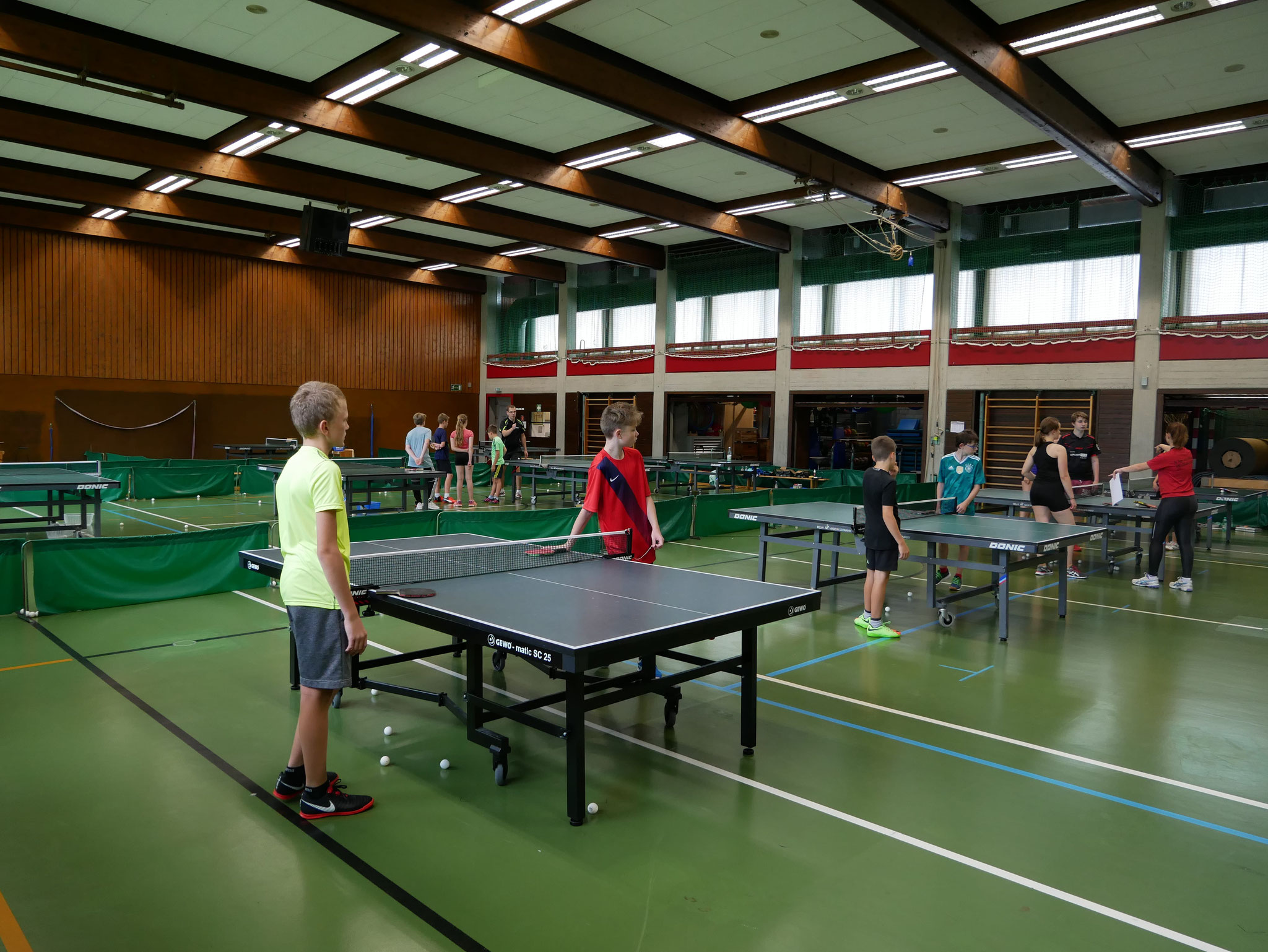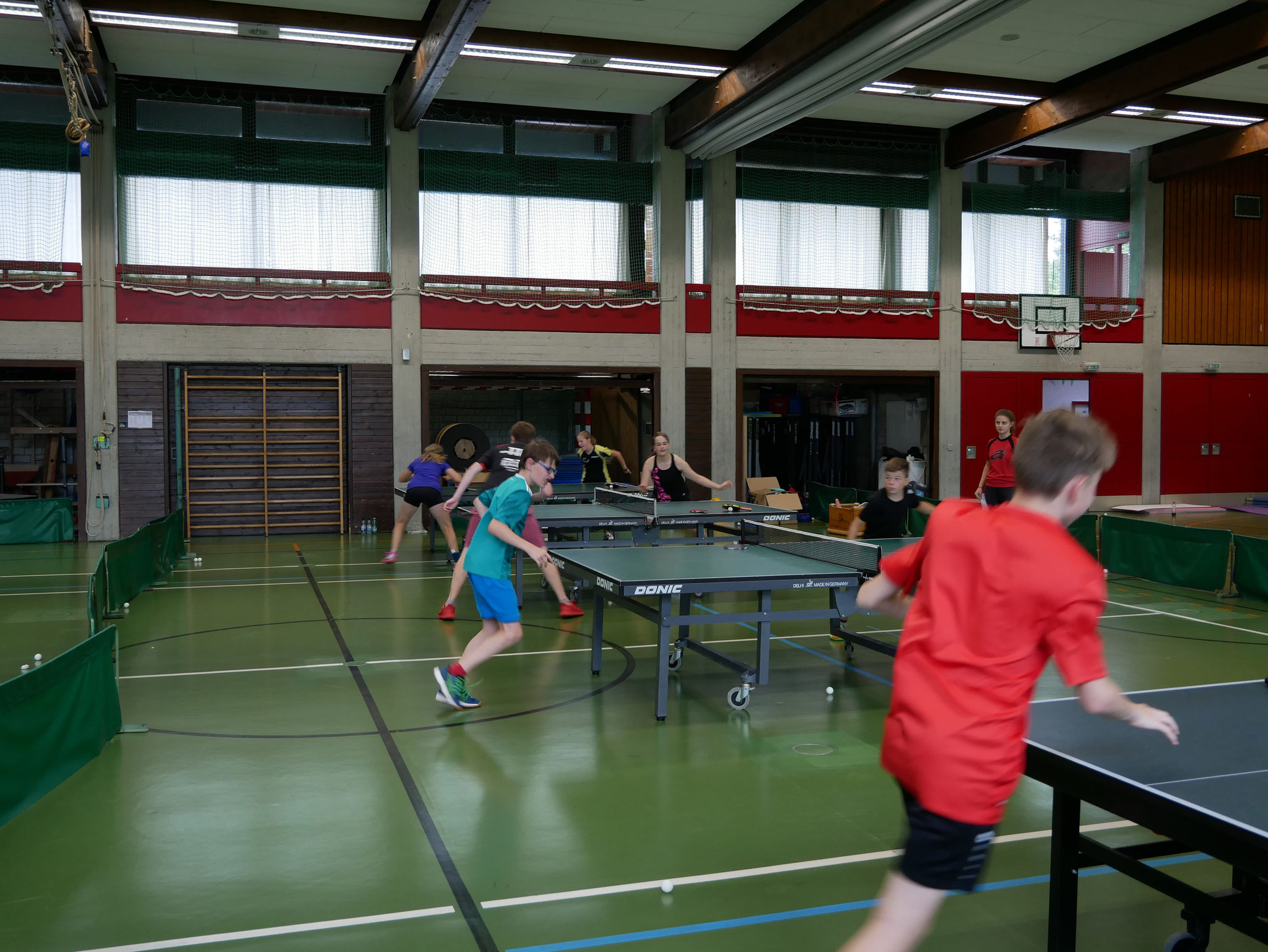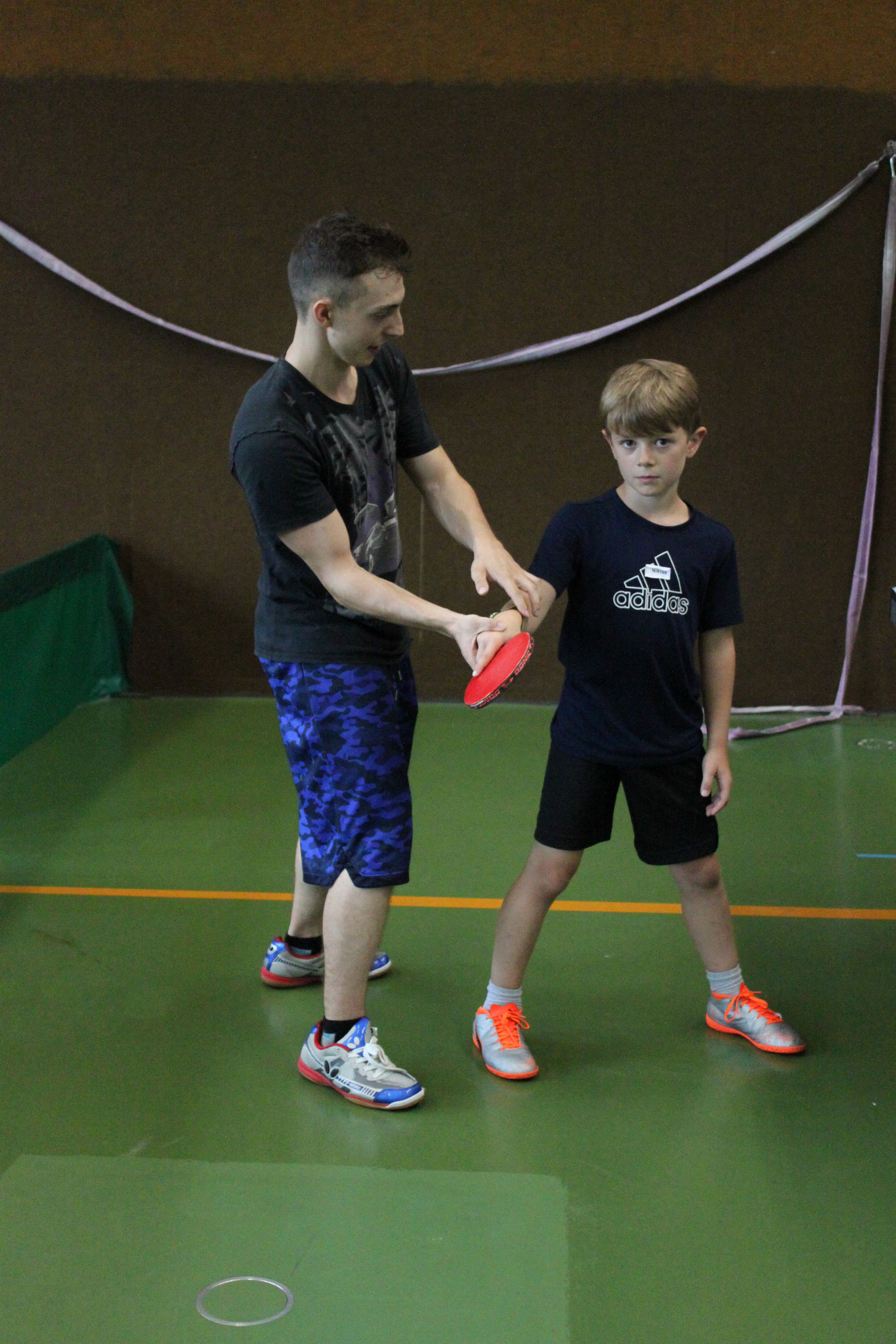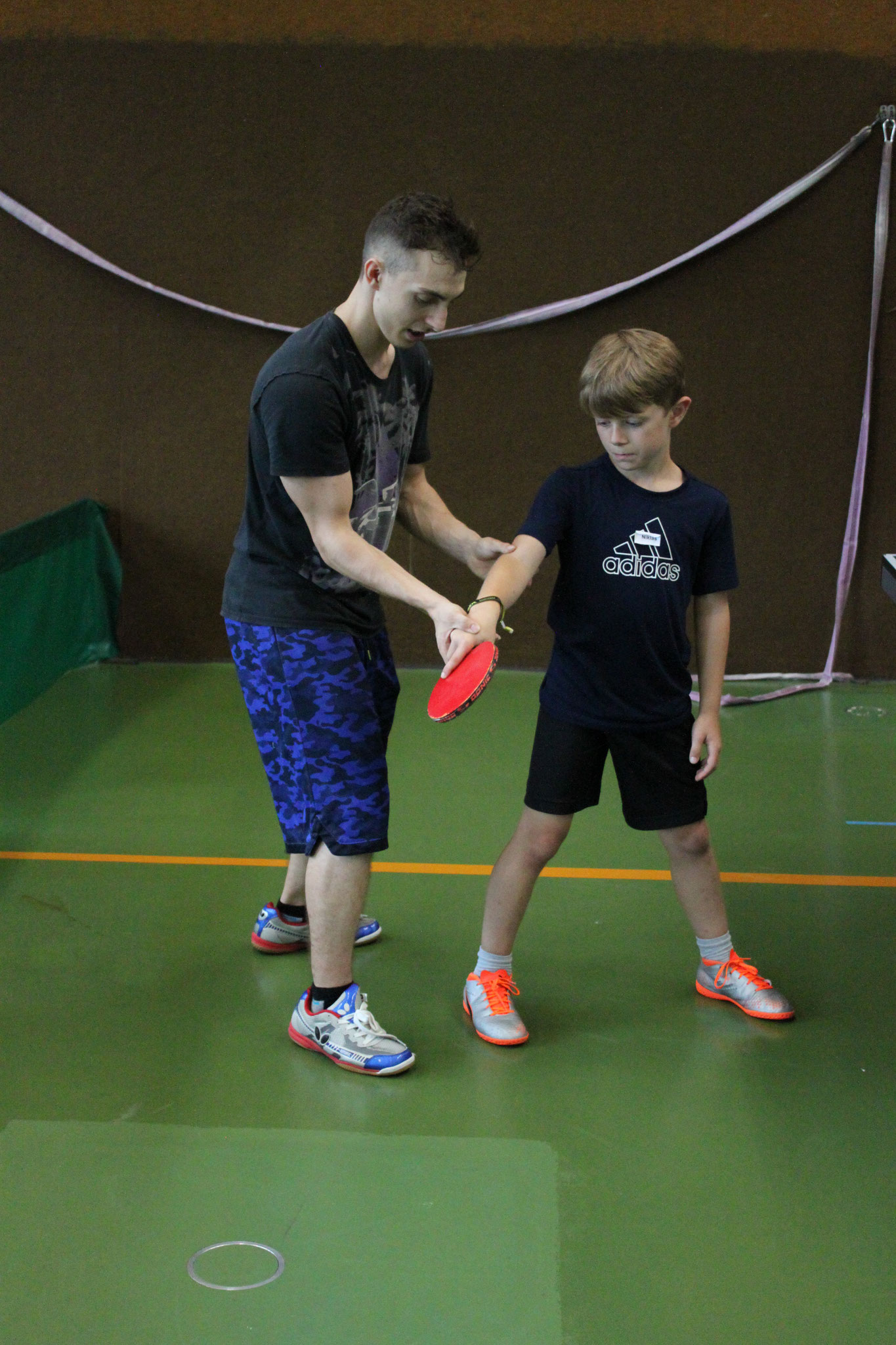 Am Donnerstag folgte wieder ein straffes Programm mit drei TT-Einheiten sowie dem Wettkampf, besonders die Wunscheinheit der Teilnehmer mit dem Thema „Kinder trainieren die Trainer“ bereitete allen viel Spaß, da hier die Trainer ebenfalls an den von den Jugendlichen geplanten Übungen teilnahmen und für sie das ein Novum war. Abends bei der „TT-Night“ konnten die Trainer herausgefordert werden bzw. an speziellen Tischen das spielerische Können auf die Probe gestellt werden.