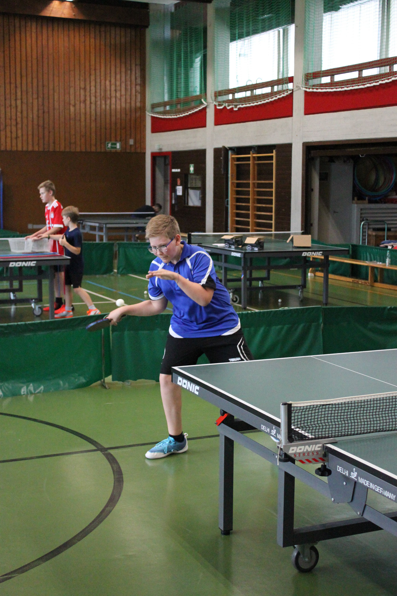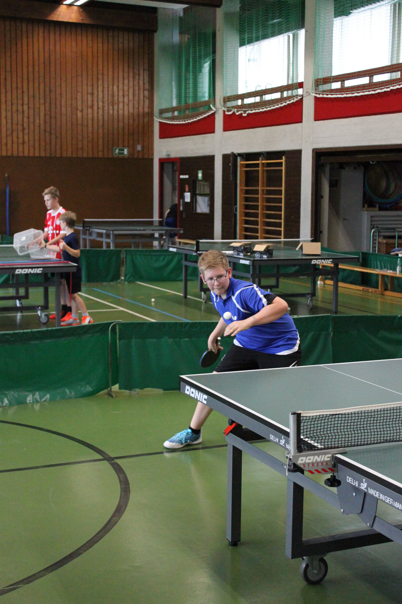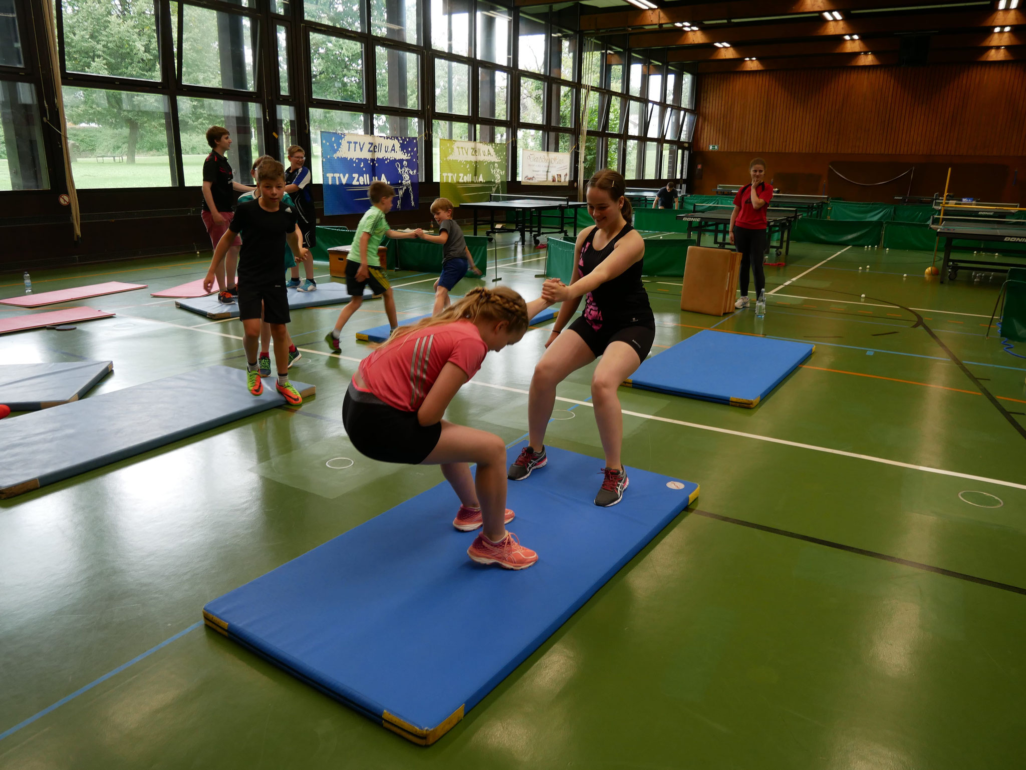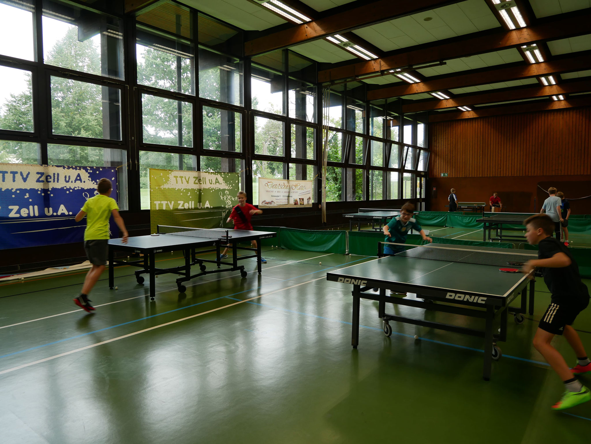 Am Donnerstag folgte wieder ein straffes Programm mit drei TT-Einheiten sowie dem Wettkampf, besonders die Wunscheinheit der Teilnehmer mit dem Thema „Kinder trainieren die Trainer“ bereitete allen viel Spaß, da hier die Trainer ebenfalls an den von den Jugendlichen geplanten Übungen teilnahmen und für sie das ein Novum war. Abends bei der „TT-Night“ konnten die Trainer herausgefordert werden bzw. an speziellen Tischen das spielerische Können auf die Probe gestellt werden.